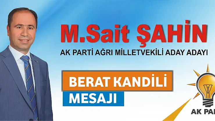 Adalet ve Kalkınma Partisi Ağrı Milletvekili Aday Adayı M.Sait Şahin, Berat Kandili nedeni ile mesaj yayınlayarak Ağrılıların kandilini kutladı.