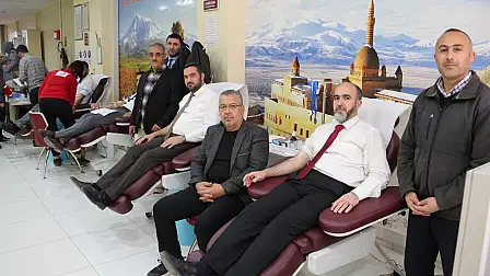 Ağrı İl Müftülüğü düzenlediği kan bağışı kampanyası ile Kızılay'a kan bağışında bulunuluyor.