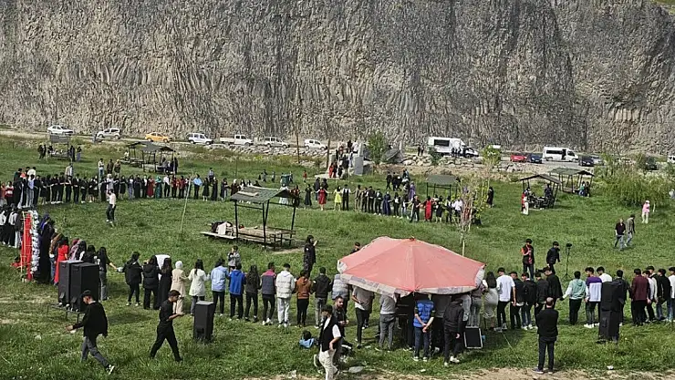 Ağrı'nın Diyadin ilçesinde bulunan Murat Kanyonu'nda düzenlenen etkinlikte bir araya gelen lise son sınıf öğrencileri, halay çekip mezuniyet coşkusu yaşadı.