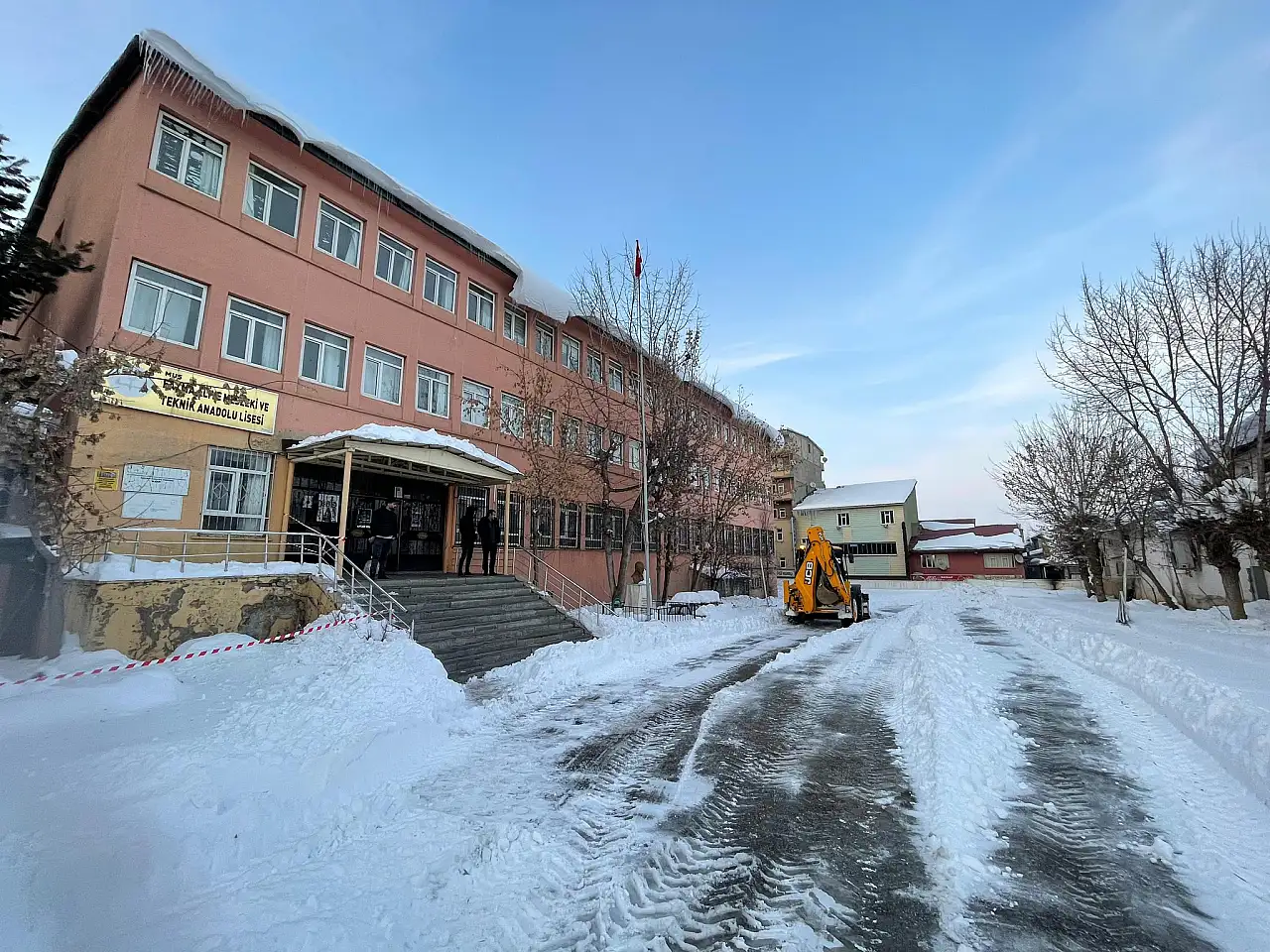 Muş Belediyesi ekipleri, yoğun kar yağışı sonrası okullar açılmadan önce okul bahçelerinde kar temizliği çalışması yaptı.
