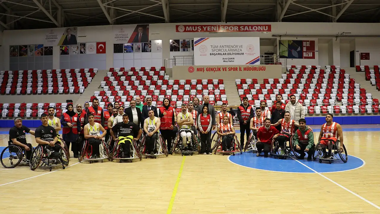 Muş Valisi Avni Çakır, eşi Bahar Çakır, Gençlik ve Spor İl Müdürü Yusuf Kılıç ve il protokolü, TBESF Tekerlekli Sandalye Basketbol 1. Ligi kapsamında Muş’u temsil eden Muş BESK ile Samsun BESK arasında oynanan karşılaşmayı tribünden izledi.