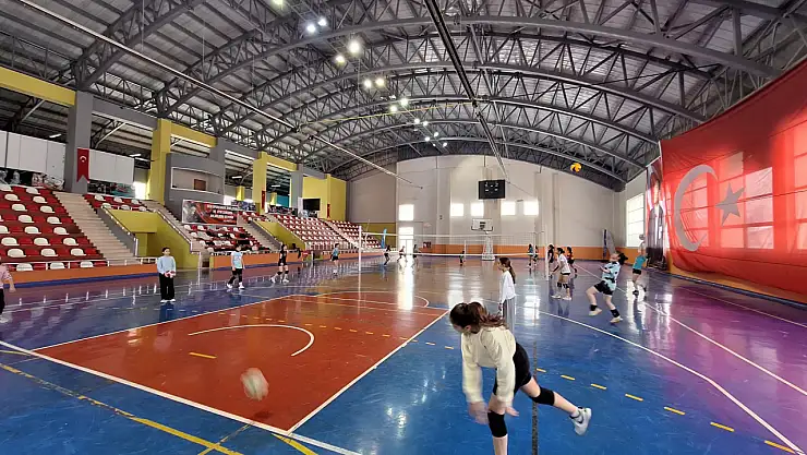 Bulanık Spor Salonu'nda voleybol antrenmanları, GSB Okul Sporları kapsamında uzman antrenörler eşliğinde yoğun katılım ile devam ediyor.