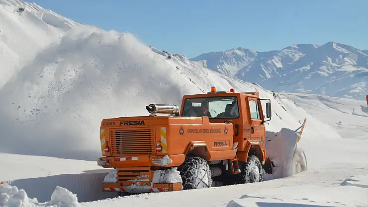 Muş-Kulp kara yolunun ulaşıma açılması için ekipler zorlu hava koşullarında kar temizleme çalışmaları yapıyor.
