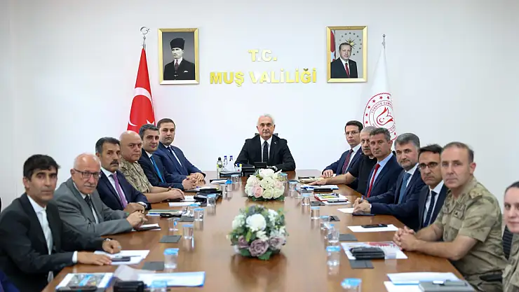 Muş’ta 2025-2026 eğitim-öğretim yılı öncesinde okullarda güvenli bir eğitim ortamının sağlanması amacıyla kapsamlı bir toplantı gerçekleştirildi. Toplantıya Vali Avni Çakır başkanlık ederken, Vali Yardımcıları, kolluk birim amirleri ve ilgili kurum müdürleri de katılım sağladı.