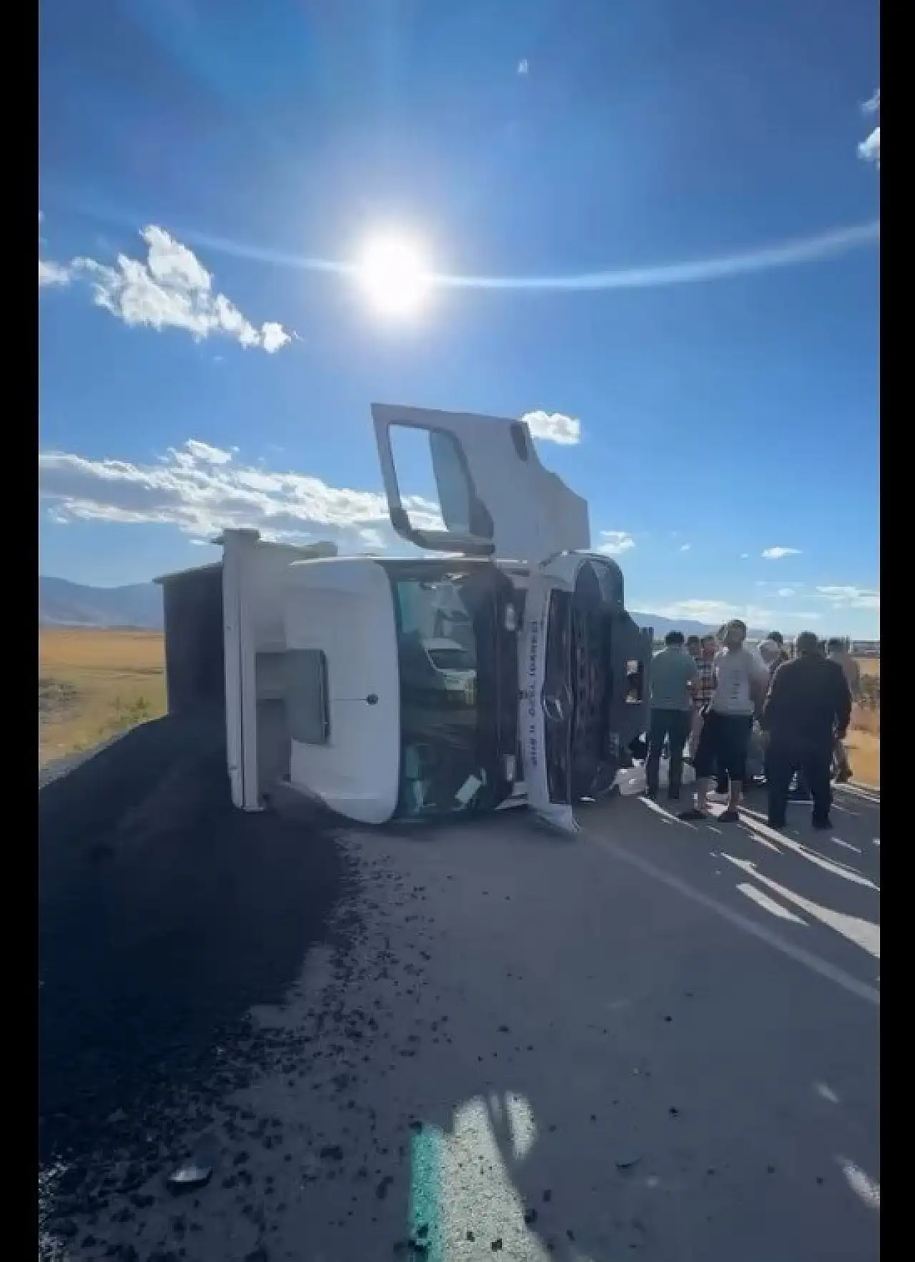 Muş'ta asfalt yüklü bir kamyon, sürücüsünün direksiyon hakimiyetini kaybetmesi sonucu devrildi. Yaralanan sürücü hastaneye kaldırılırken, kaza nedeniyle yol kısa süreliğine trafiğe kapatıldı. Olayla ilgili inceleme başlatıldı.