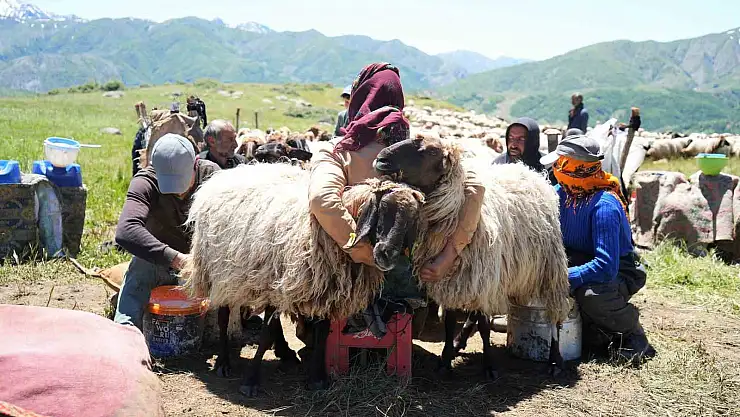 Güneydoğu Anadolu Bölgesi'ndeki illerden yaklaşık bir aylık yolculuğun ardından Muş'un serin ve verimli yaylalarına sürüleriyle gelen berivanlar süt sağım mesaisine başladı.