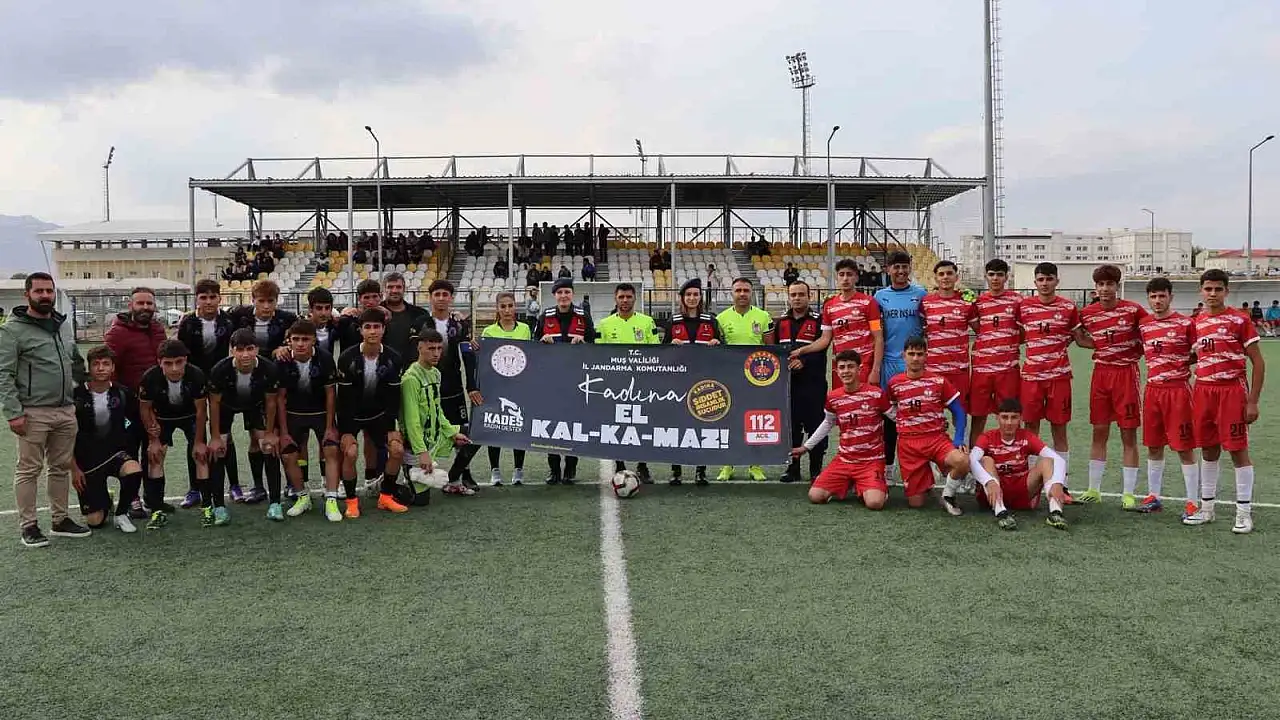 Muş'ta düzenlenen liseler arası futbol finali öncesinde, 'Kadına El Kalkamaz' temalı bir bilinçlendirme etkinliği yapıldı. Jandarma, kadına yönelik şiddetle mücadele için erkeklere farkındalık kazandırmayı amaçlayan projeyi tanıtarak toplumsal duyarlılığı artırdı. Etkinlik büyük ilgi gördü.