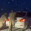 Muş’ta etkili olan kar yağışı nedeniyle rampada mahsur kalan araçlar jandarma ekiplerinin müdahalesiyle kurtarıldı.