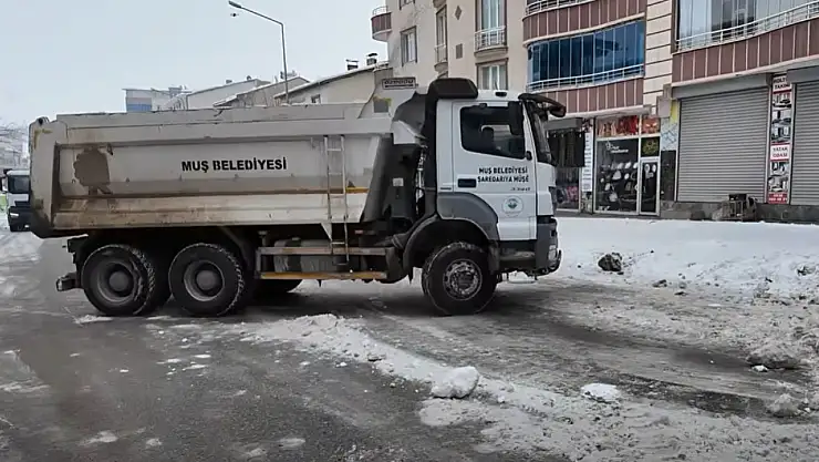 Muş Belediyesi, 27 Aralık 2025'ten bu yana karla mücadele kapsamında kent merkezinde biriken kar yığınlarını iş makineleriyle kamyonlara yükleyip belirlenen alanlara taşıyarak cadde ve sokaklardaki yaya ile araç trafiğini rahatlatıyor.