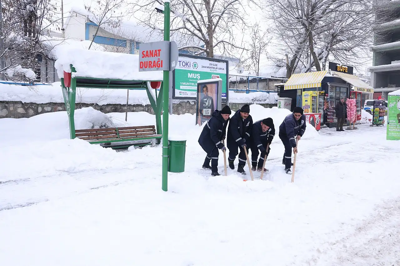 Muş'ta etkisini artıran kar yağışı nedeniyle belediye ekipleri gece boyunca karla mücadele çalışmaları yürüttü.