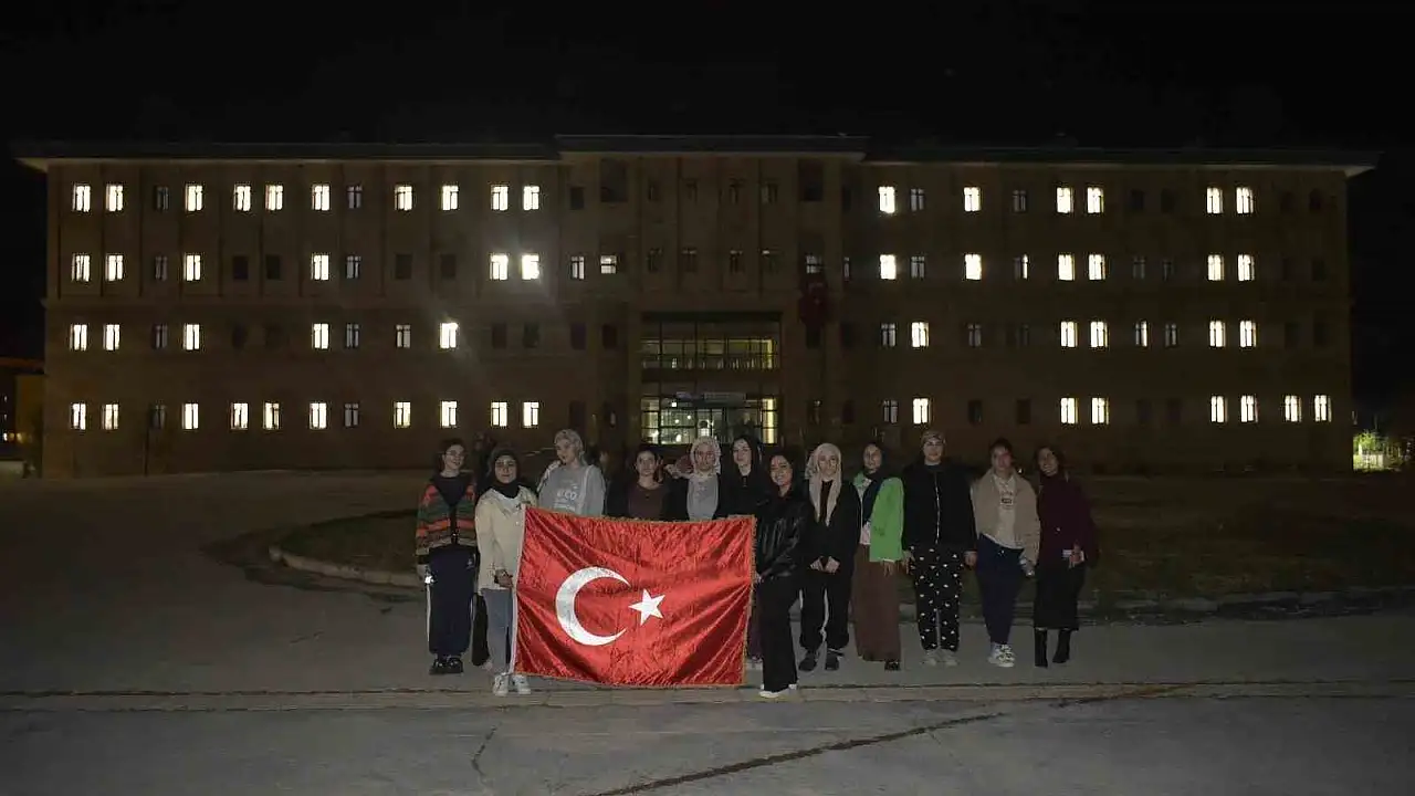 Muş'un Malazgirt ilçesindeki devlet yurtlarında kalan kız öğrenciler, Cumhuriyet'in 102. yılı için özel bir ışık koreografisi düzenledi. Eğitimci Berivan Öztürk önderliğinde gerçekleştirilen etkinlik, birlik ve beraberlik duygusunu vurguladı. Yurt müdürü de öğrencileri tebrik etti.