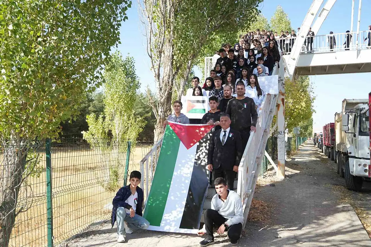 Öğrencilerden Rabia Karakaya, "Bugün, İsrail’in Filistin’e uyguladığı baskılar nedeniyle arkadaşlarımla bir program düzenledik. Katliama ‘dur’ demek istiyoruz. Bu zulme son verilmesini ve Filistin’deki öğrencilerin de okullarına gidebilmelerini istiyoruz" diye konuştu.