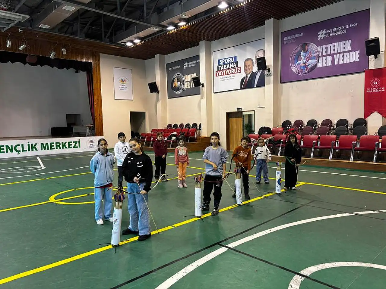 Muş Gençlik ve Spor İl Müdürlüğü koordinesinde, GSB Okul Sporları faaliyetleri kapsamında yürütülen okçuluk antrenmanları, uzman antrenörler eşliğinde aralıksız devam ediyor.