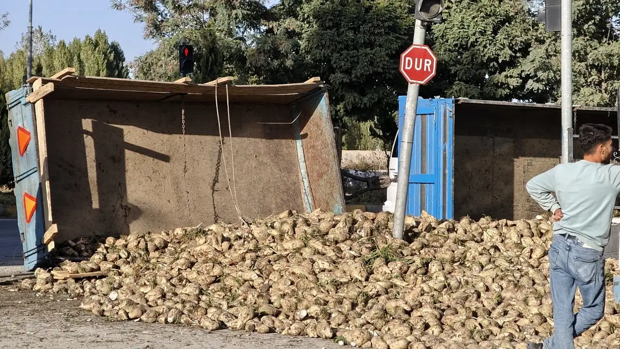 Muş'ta şeker pancarı yüklü bir traktör, sürücüsünün direksiyon hâkimiyetini kaybetmesi sonucu devrildi. Pancarlar yola saçıldı, olay yerine polis ekipleri sevk edildi. Kazada can kaybı ya da yaralanma olmadı, trafik kontrollü olarak yeniden akışa geçti.