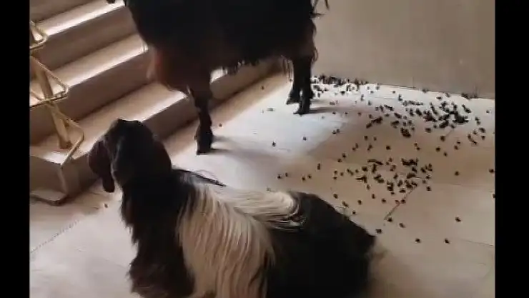 Muş’ta sıcaktan kaçan iki keçi apartmana girdi. Aşağı inmekte inat eden iki keçi asansörle aşağı indirildi. Ortaya renkli görüntüler çıktı.