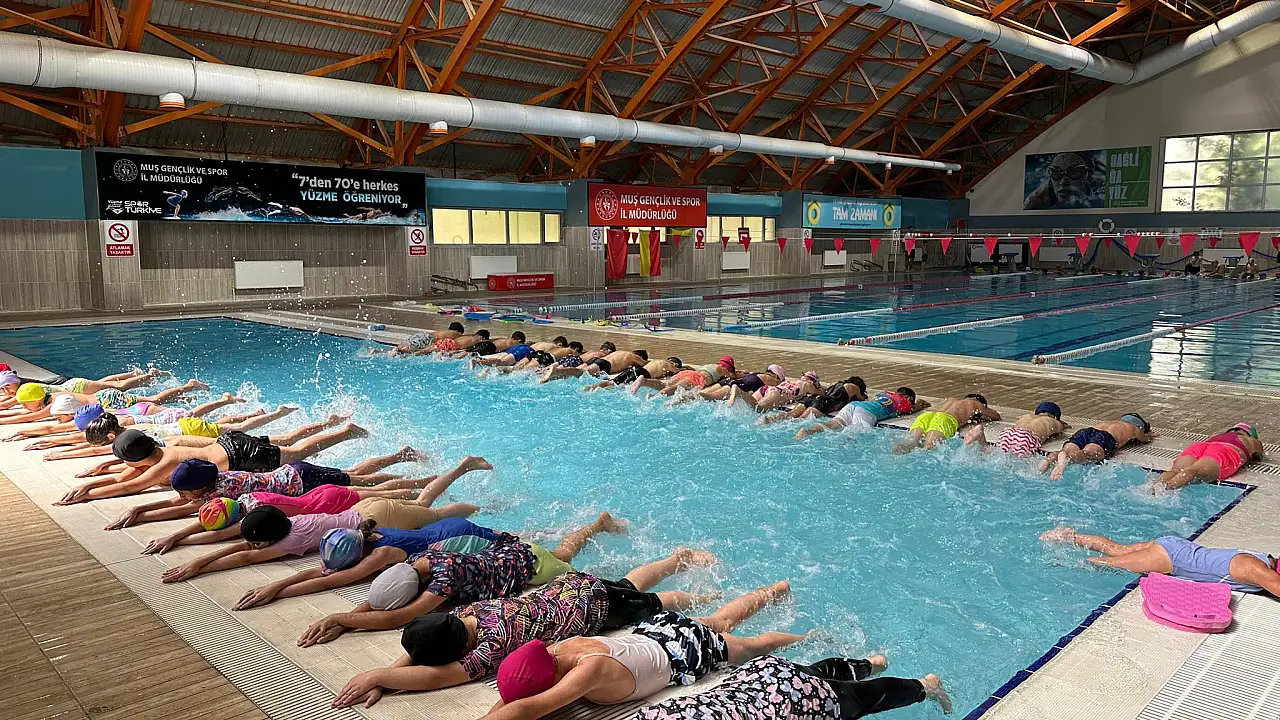 Muş Gençlik ve Spor İl Müdürlüğü, 'Yüzme Bilmeyen Kalmasın Projesi' kapsamında çocuk ve gençlere yüzme eğitimi vermeye devam ediyor.