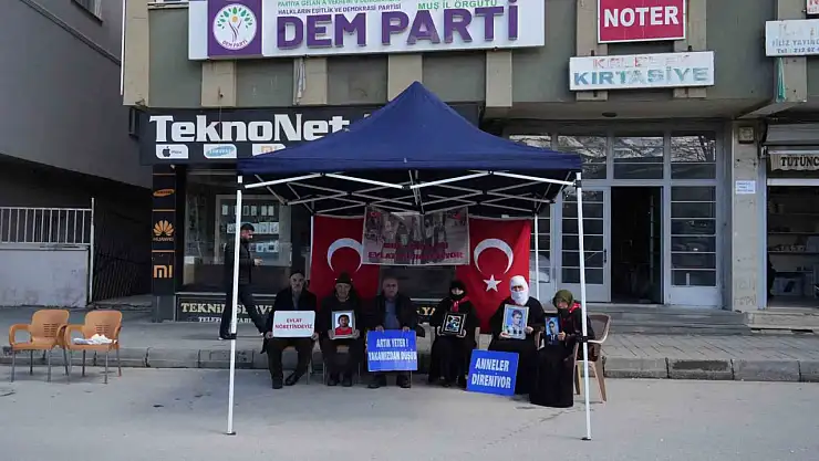 Muş'ta çocukları terör örgütü PKK tarafından kaçırılan aileler, DEM Parti İl Başkanlığı önündeki eylemlerine devam ediyor.