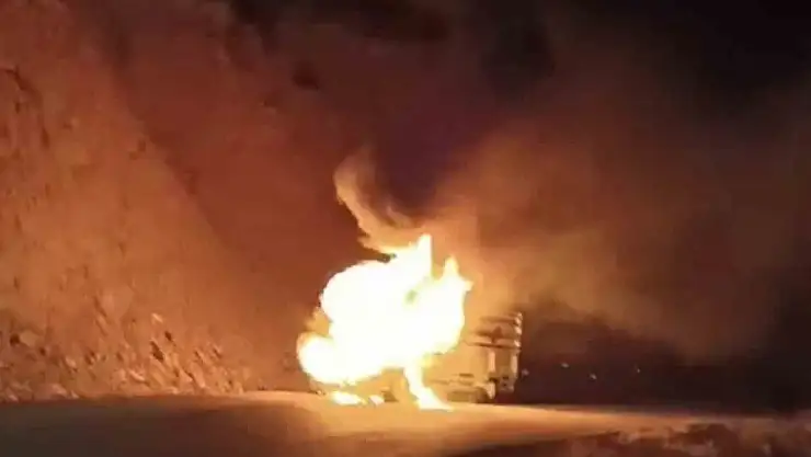 Üçevler grup köy yolunda plakası öğrenilemeyen seyir halindeki bir kamyonet aniden alev alarak yandı. Henüz kimliği öğrenilemeyen sürücü, can havliyle kendini araçtan dışarı atarak yanmaktan son anda kurtuldu.
