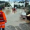 Öğlen saatlerinde etkili olan hortumun ardından sağanak ile birlikte sel meydana geldi. çok sayıda otomobil sel sularına kapıldı.