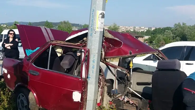 Elektrik direğine çarpan otomobil ortadan ikiye bölündü, sürücü yaralandı.