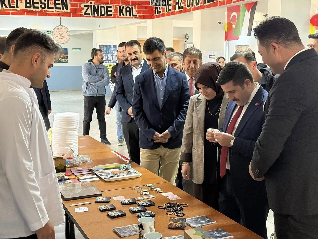 Özalp Kaymakamı Rahmi Bulut, eşi Berna Bulut ve AK Parti ilçe yöneticileri, Özalp TOKİ Mesleki ve Teknik Anadolu Lisesi'nde düzenlenen Filistin destek kermesinde öğrencilerle bir araya geldi.