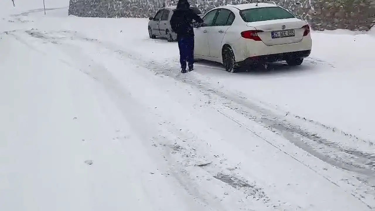 Erzurum - Tekman karayolu 2 bin 885 rakımlı Palandöken geçidinde yoğun kar yağışı nedeniyle sürücüler ilerlemekte güçlük çekti. Bazı sürücüler zincirsiz bazıları kar tipi lastik kullanmadığı için yolda zor anlar yaşarken hazırlıklı olanlar ise diğer kişi sürücülere yardımcı oldu.