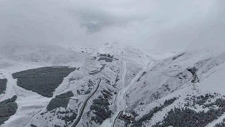 Kent merkezinde etkili olan sağanak yağış gece yarısından itibaren yüksek kesimlerde kar şeklinde etkili oldu. Kar yağışı sonrası Palandöken adeta beyaz gelinliğini yeniden giyerken beyaz örtüyle kaplanan kayak merkezinde adeta görsel şölen oluştu.