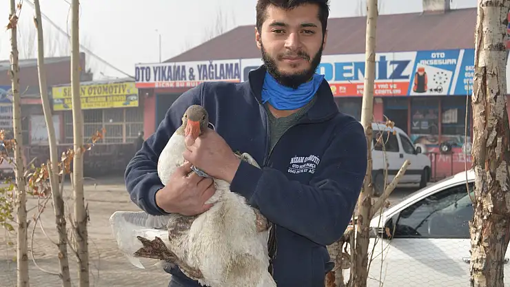 Ağrı Sanayi Sitesinde kaporta ustası olarak çalışan Ufuk Yıldız, korona virüs nedeniyle daha güvenli ve sağlıklı olması için tüketmek istediği kazları sanayi sitesinin bahçesine kurduğu çiftlikte besliyor.