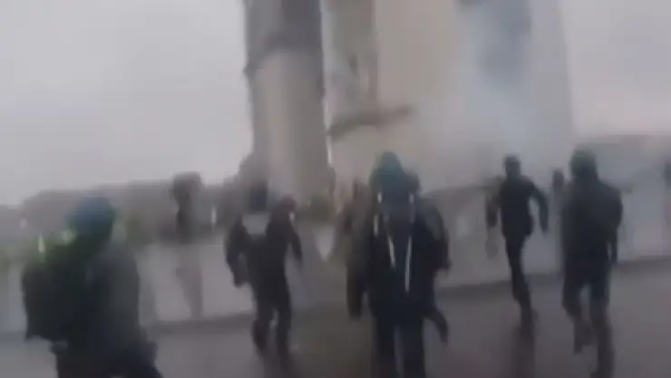 Fransa'nın başkenti Paris'te Sarı Yelekli eylemcilerin düzenlediği gösterilerde polise yönelik çeşitli saldırılar düzenlendi, o anlar saniye saniye polis kameralarınca kaydedildi.