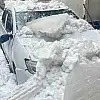 Bitlis'in Tatvan ilçesinde bir binanın çatısından düşen kar kütleleri, park halindeki otomobile büyük zarar verirken olayda can kaybı yaşanmaması olası bir faciayı önledi.