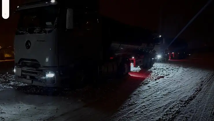 Patnos'ta kar yolu kapattı, tırlar mahsur kaldı