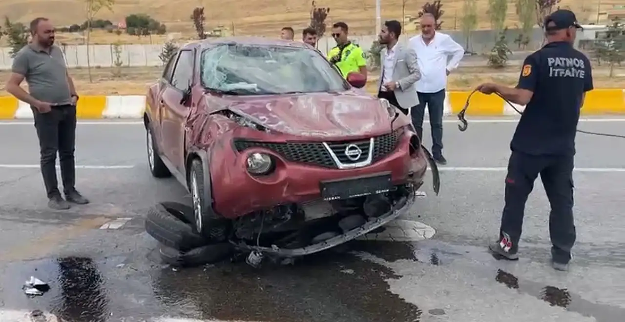 Patnos'ta Sanayi Kavşağı'nda iki araç çarpıştı, araçlardan biri takla attı.