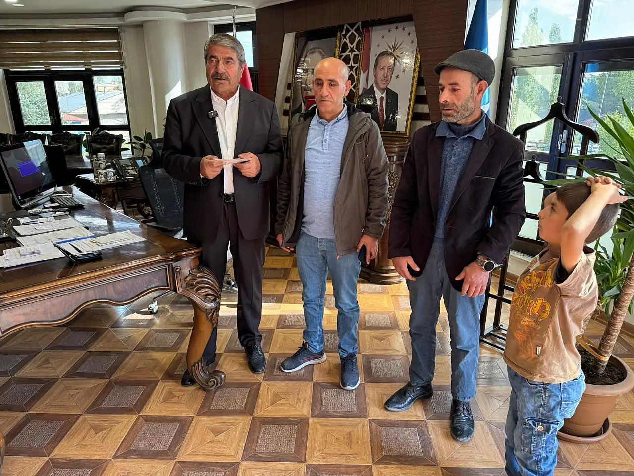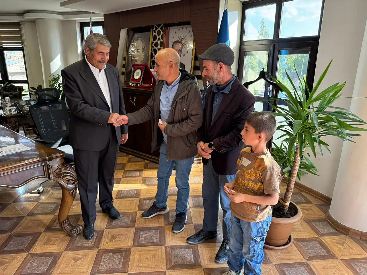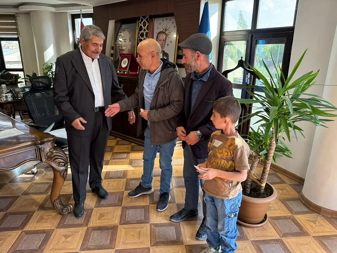 Başkanlık makamında gerçekleşen buluşmada, Başkan Taşkın ve temizlik işçisi Mahsun Çengir, cüzdanı ve içindeki parayı sahibine eksiksiz şekilde teslim etti.