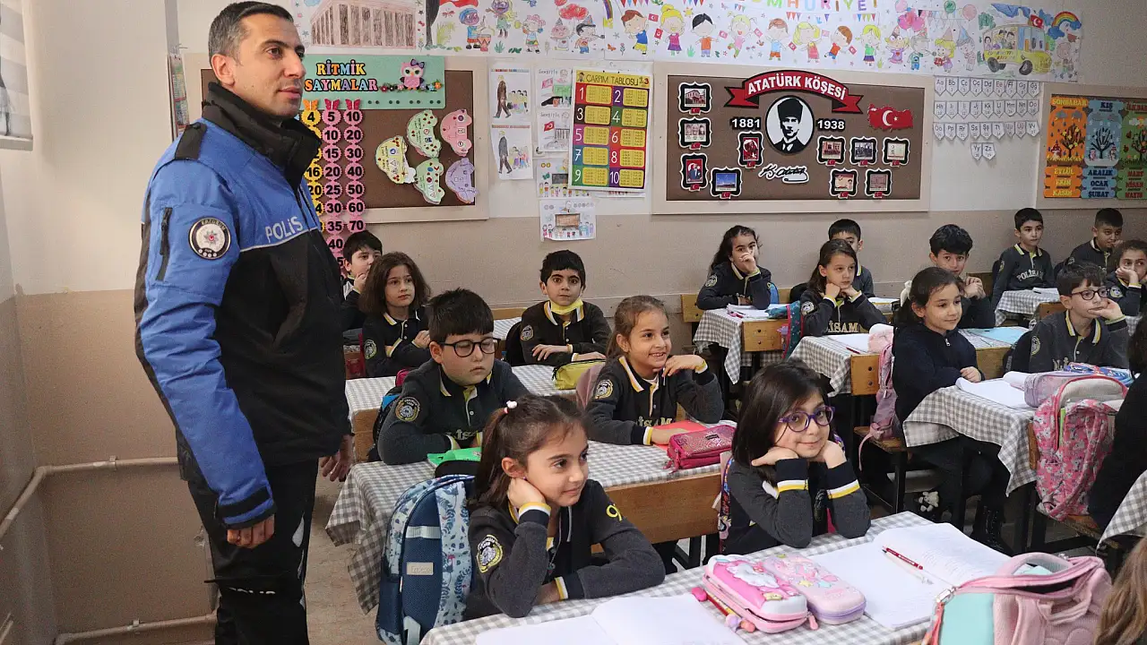 Erzurum Emniyet Müdürlüğü tarafından Polis Amca İlkokulu'nda öğrencilere güvenlik, trafik ve güvenli internet konularında bilgilendirme yapıldı, broşür dağıtıldı.