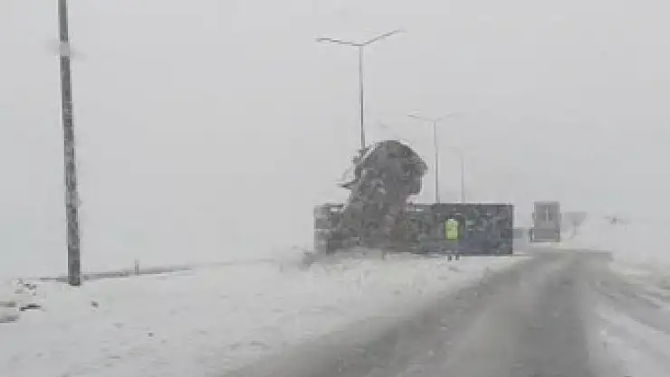 Bitlis’te sabah saatlerinde etkisini artıran olumsuz hava şartları, trafiği olumsuz etkiledi. Bitlis-Tatvan kara yolu Rahva mevkiinde seyir halinde olan ve sürücüsünün kimliği ile plakası henüz öğrenilemeyen bir tır, kaygan zemin nedeniyle kontrolden çıkarak yan yattı.