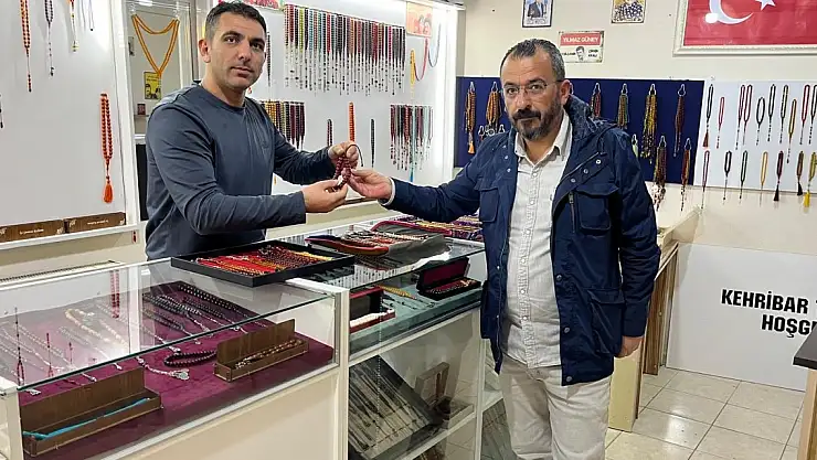 Bugün de 45 bin TL’ye 52 gram Osmanlı sıkma kehribarını sattıklarını ifade eden Kösedağ, tespihin alıcıya hayırlı olmasını diledi.