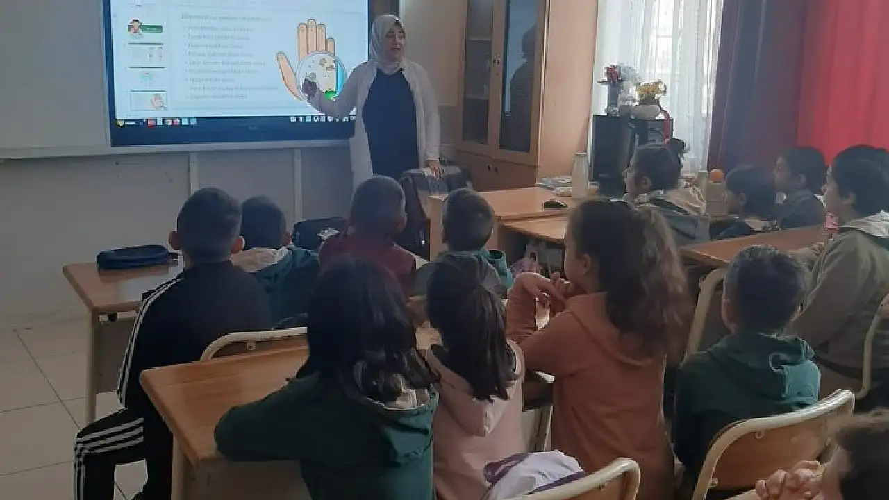 Kazım Karabekir İlkokulu'nda Sağlıklı Çocuk, Sağlıklı Gelecek Projesi kapsamında öğrencilere hijyen, sağlıklı beslenme ve acil sağlık hizmetleri eğitimi verildi.