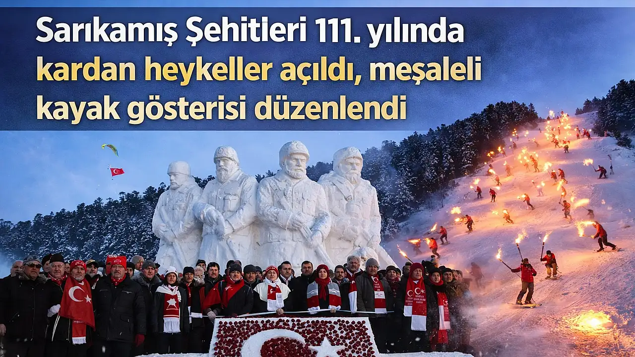 - Sarıkamış Şehitleri 111. yılında kardan heykeller açıldı, meşaleli kayak gösterisi düzenlendi