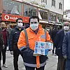 Ağrı Belediye Başkanı Savcı Sayan, Ağrı Belediyesince Tekstil Kent deki fabrikalarda üretilen maskeleri Cumhuriyet Caddesi'nde esnaf ve vatandaşlara dağıttı.