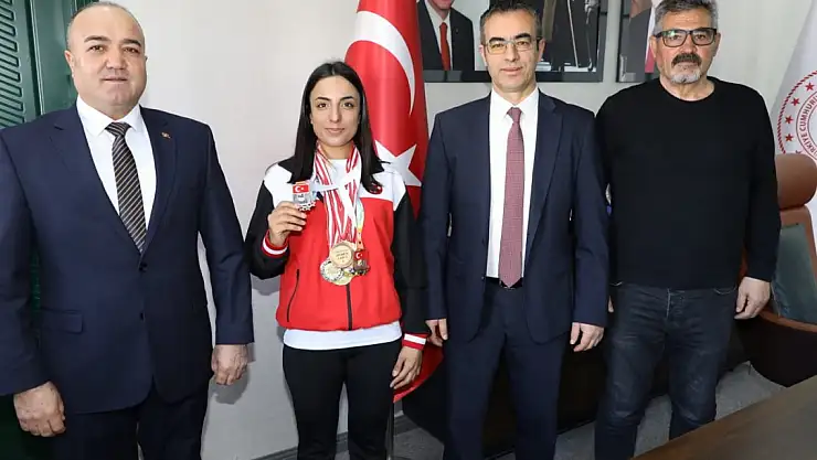 Gençlik ve Spor İl Müdürü Fedai Din, başarılı milli sporcuyu makamında kabul ederek, üstün başarılarından dolayı kutladı.