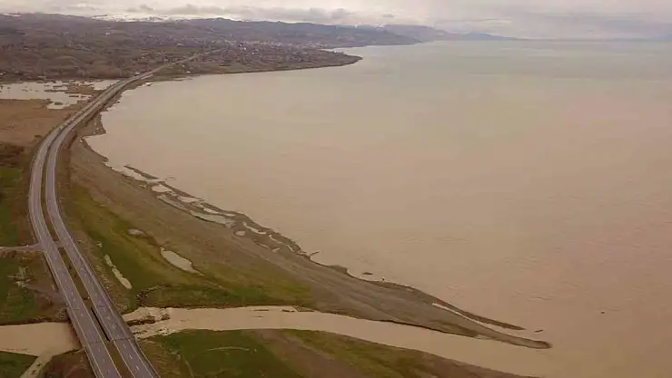 Ahlat-Tatvan yolu üzerindeki 10 kilometrelik hattan dökülen sel suları sonrası Van Gölü kahverengine boyanırken, ortaya çıkan görüntü ise havadan görüntülendi.