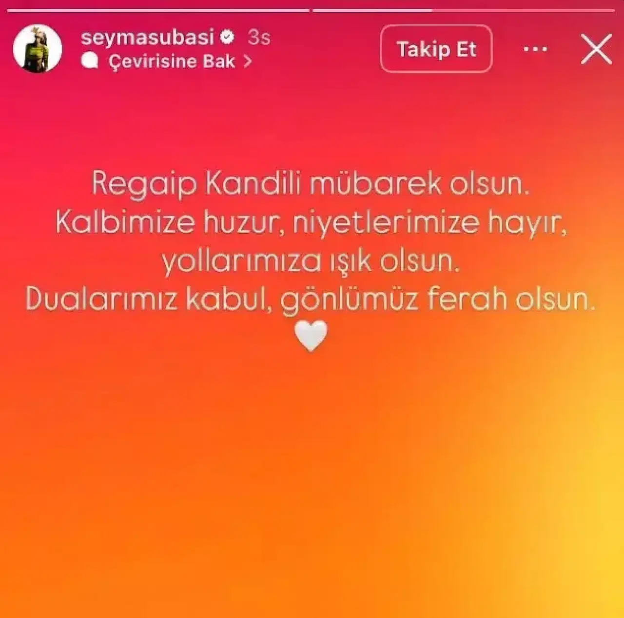 Şevval Şahin: Instagram hikayesinden yaptığı paylaşımda, "Kalpten edilen tüm dualar kabul olsun" ifadelerine yer vererek manevi bir temennide bulundu.