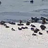 Erzurum'un Aşkale ilçesinde gece eksi 35 dereceyi bulan dondurucu soğuklar baraj göletini buzla kapladı, göçmen kuşlar hayatta kalmak için açık kalan dar alanlara sığındı.