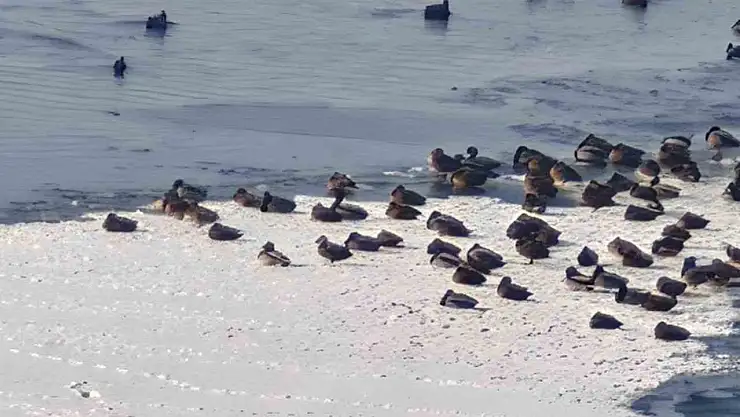Göçmen kuşların konaklama ve beslenme alanı olarak kullandığı gölet, aşırı soğuklar nedeniyle buz tutarken, kuşlar yaşamlarını sürdürebilmek için gölete akan suyun oluşturduğu küçük ve buz tutmayan bölgelerde yiyecek aramaya başladı. Zorlu hava koşulları altında verilen bu yaşam mücadelesi, kış şartlarının yaban hayatı üzerindeki etkisini çarpıcı biçimde ortaya koydu.