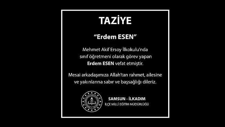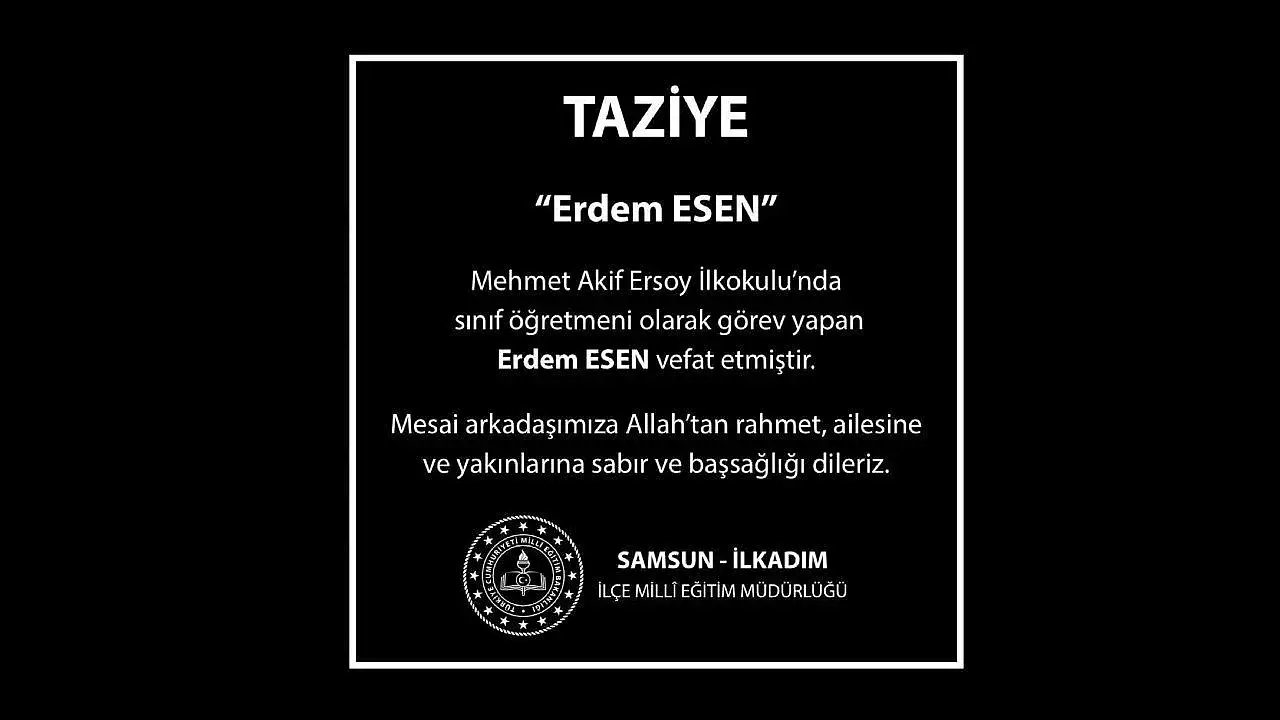 Erdem Esen’in beklenmedik vefatının ardından Samsun İl Milli Eğitim Müdürlüğü bir taziye mesajı yayımlayarak acılı aileyi ve eğitim dünyasını yalnız bırakmadı. Yayımlanan mesajda, Erdem öğretmenin eğitim neferi olarak sunduğu katkıların asla unutulmayacağı vurgulanırken; kederli ailesine, mesai arkadaşlarına ve öğrencilerine sabır ile başsağlığı dilekleri iletildi. Sosyal medyada da geniş yankı bulan vefat haberi sonrası, Esen’in eski mezunları ve velileri tarafından duygu dolu anma mesajları paylaşıldı. Eğitim camiası, başarılı bir ferdini kaybetmenin burukluğunu yaşıyor.