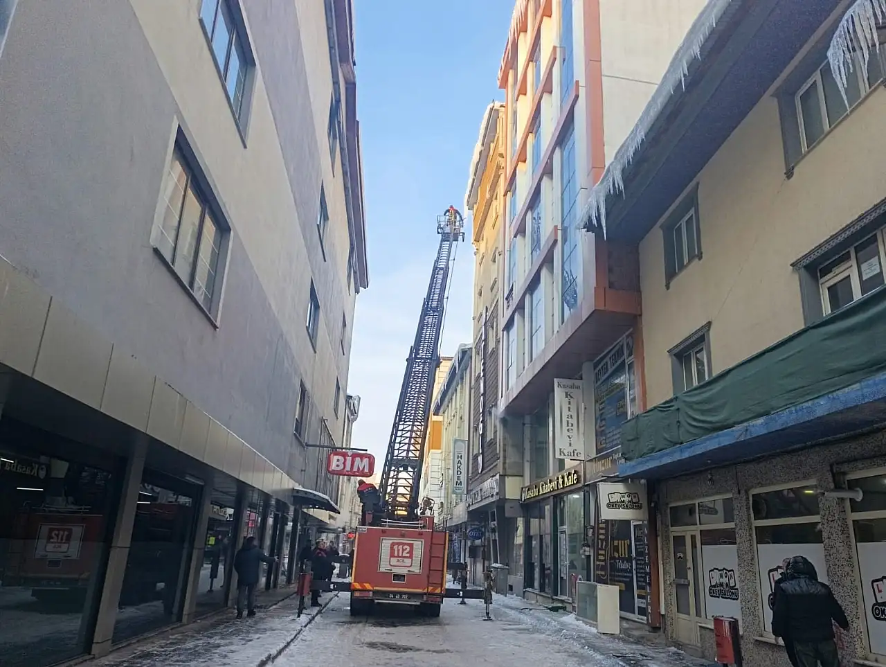 Ağrı'da kış şartlarının etkisini artırmasıyla birlikte çatılarda oluşan buz sarkıtları ve birikintilere karşı itfaiye ekipleri çalışma yürütüyor.