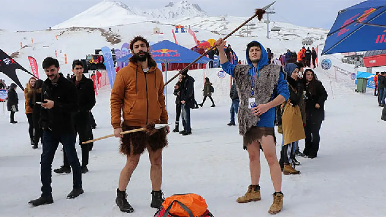 Erciyes Kayak Merkezi'nde gerçekleştirilen Redd Bull festivaline katılanlar soğuk havaya aldırış etmedi.
