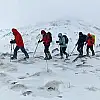 Bitlis'in Adilcevaz ilçesindeki 4 bin 58 rakımlı Süphan Dağı'na kış tırmanışı için çıkan 7 kişilik ekip, yoğun sis, tipi ve saatte 70 kilometreye ulaşan rüzgâr nedeniyle zirve hedefinden vazgeçti.