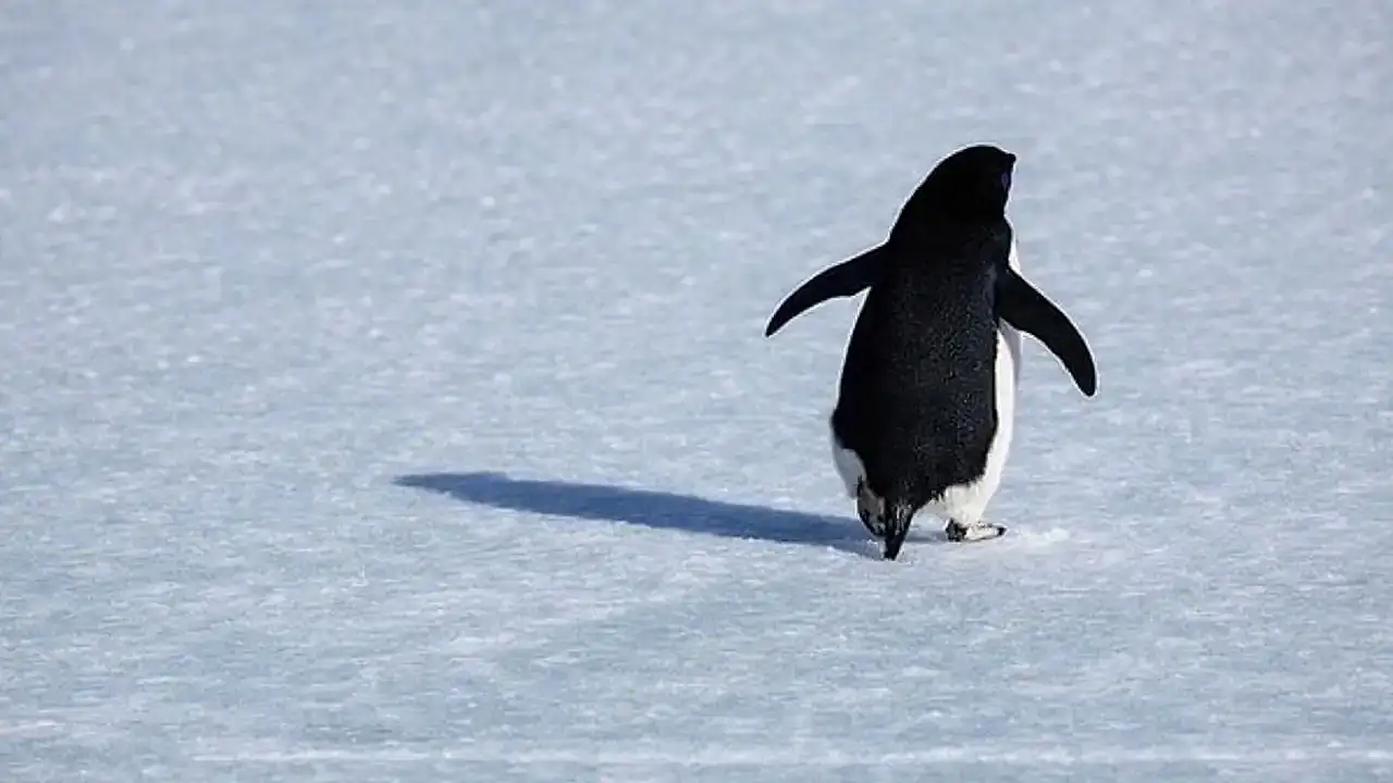 Adélie penguenlerinden oluşan bir koloni beslenmek için okyanusa doğru yürürken, bir tanesi tam ters yöne – iç kesimlere, karlı dağlara ve buzullara doğru tek başına yürümeye başlıyor. Video "Nihilist Penguen" diye anılıyor ve 2026'da yeniden patladı.