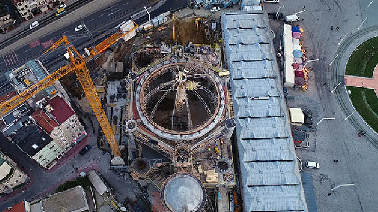 Yaklşaık olarak temeli 11 ay önce atılan Taksim Camisinde çalışamalarrson hızıyla devam ediyor.